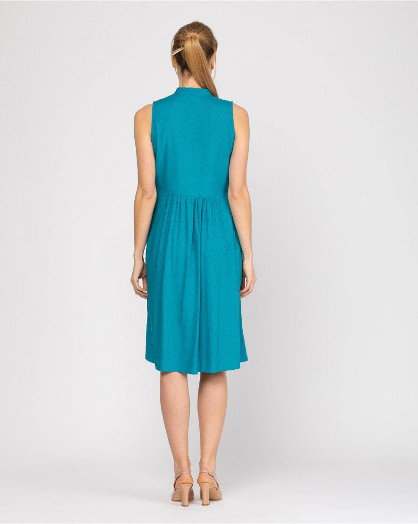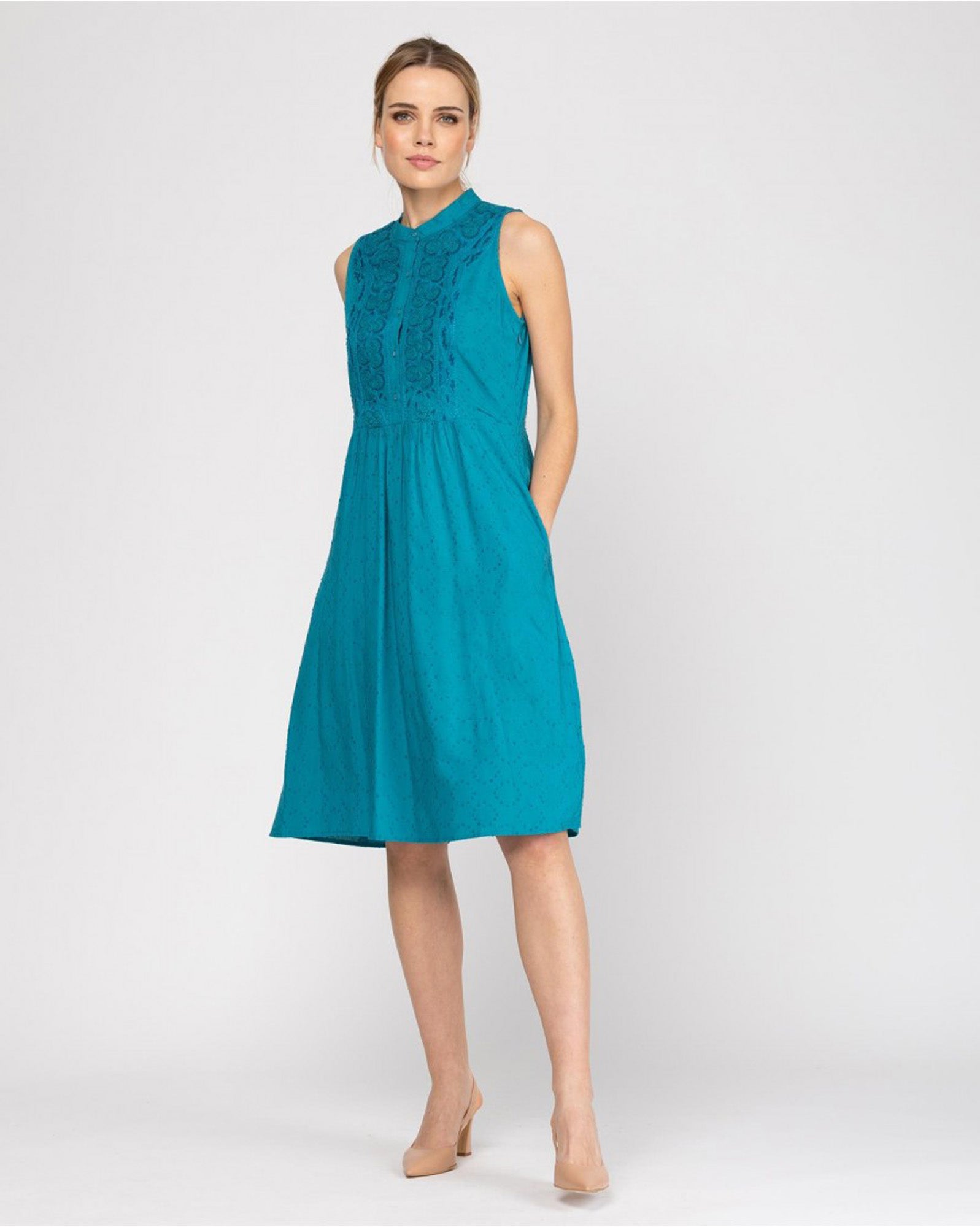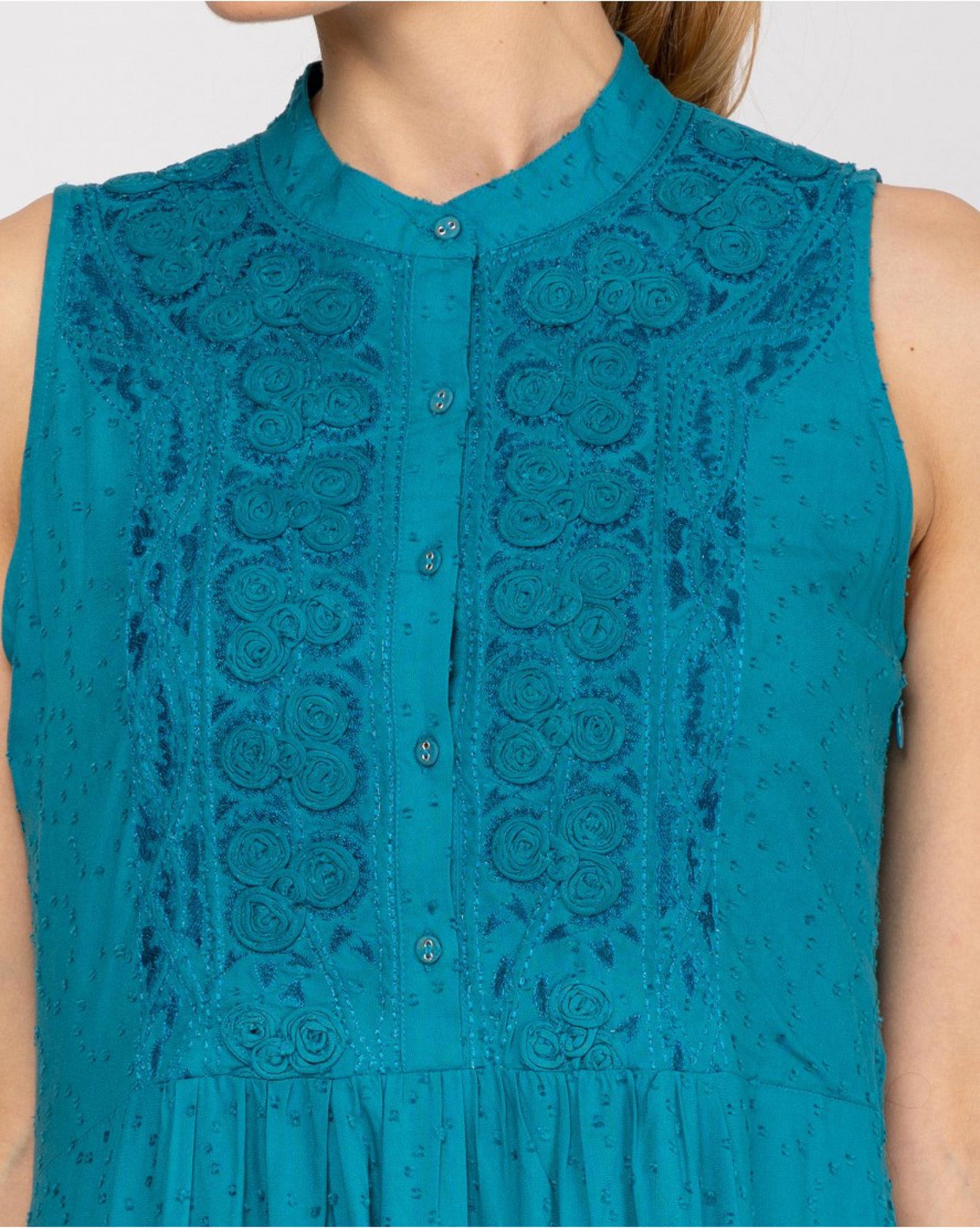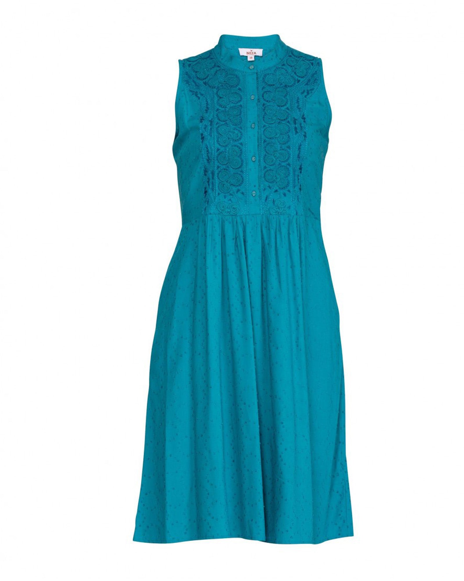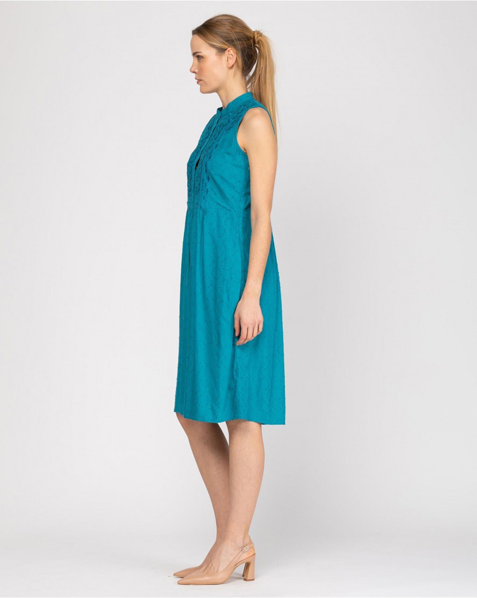 Experimenta un estilo elegante y sofisticado con nuestro vestido midi Amira. Con un hermoso color azul y sin mangas, su cuello barco sin escote y detalle bordado en la parte frontal lo hace perfecto para cualquier ocasión. Su corte midi te hará lucir a la moda y cómoda a la vez.